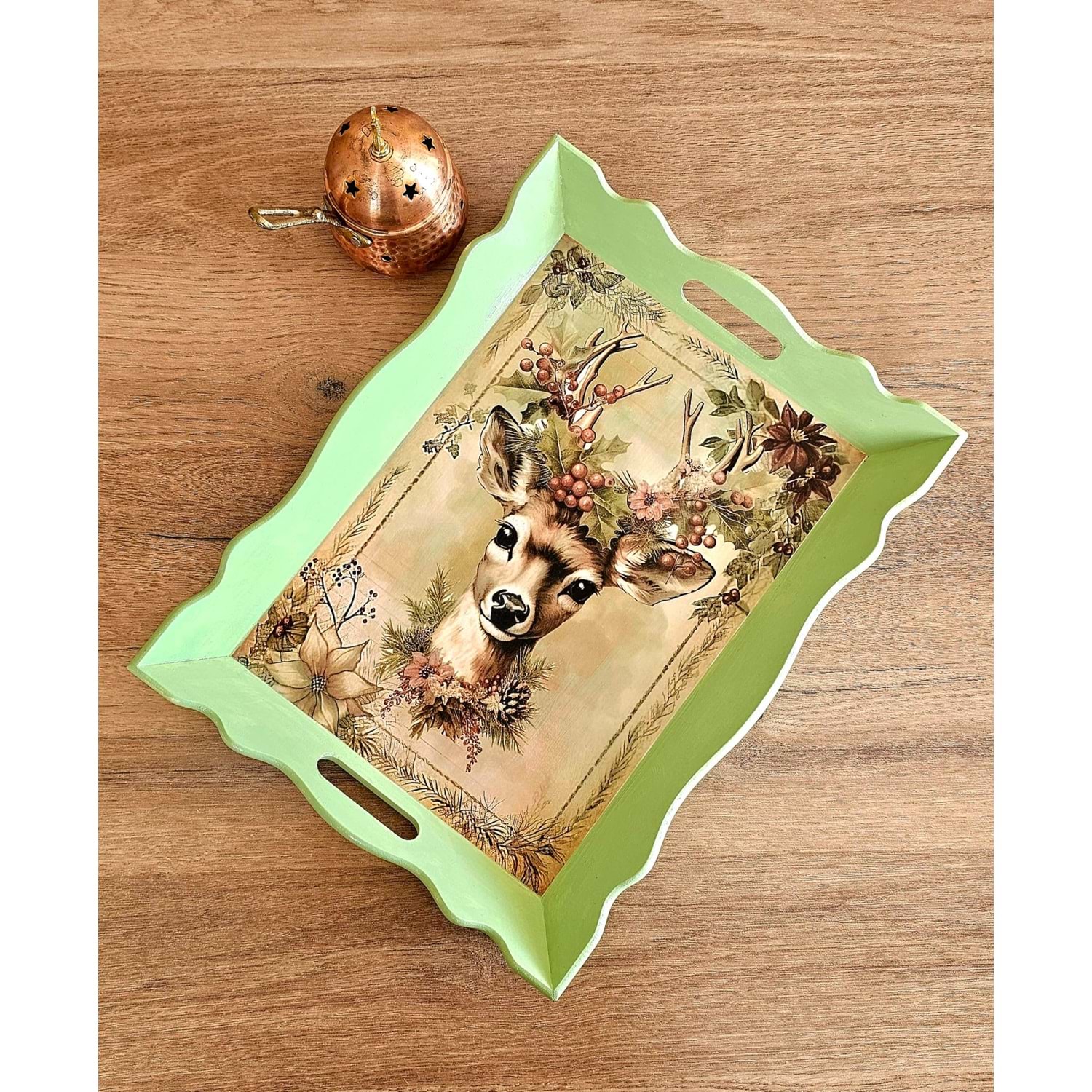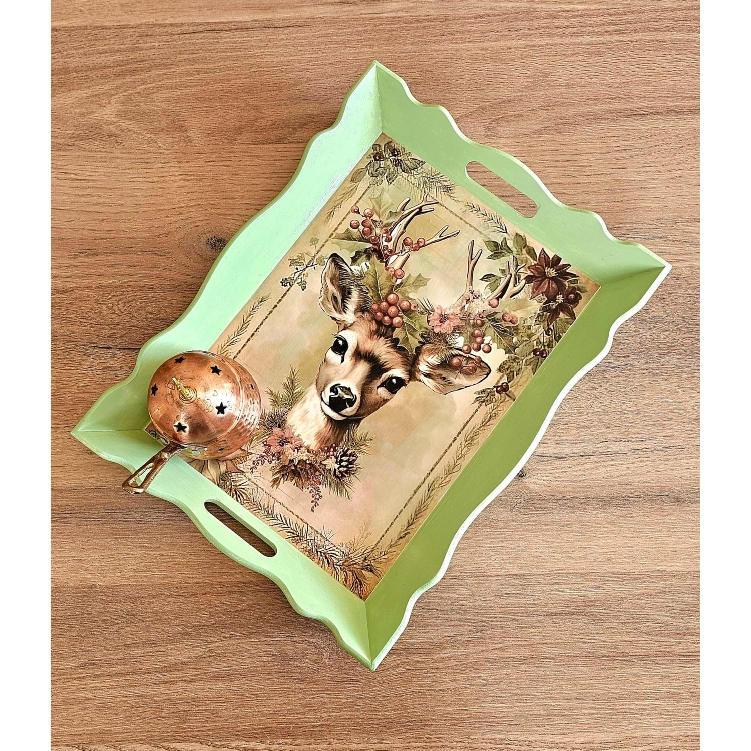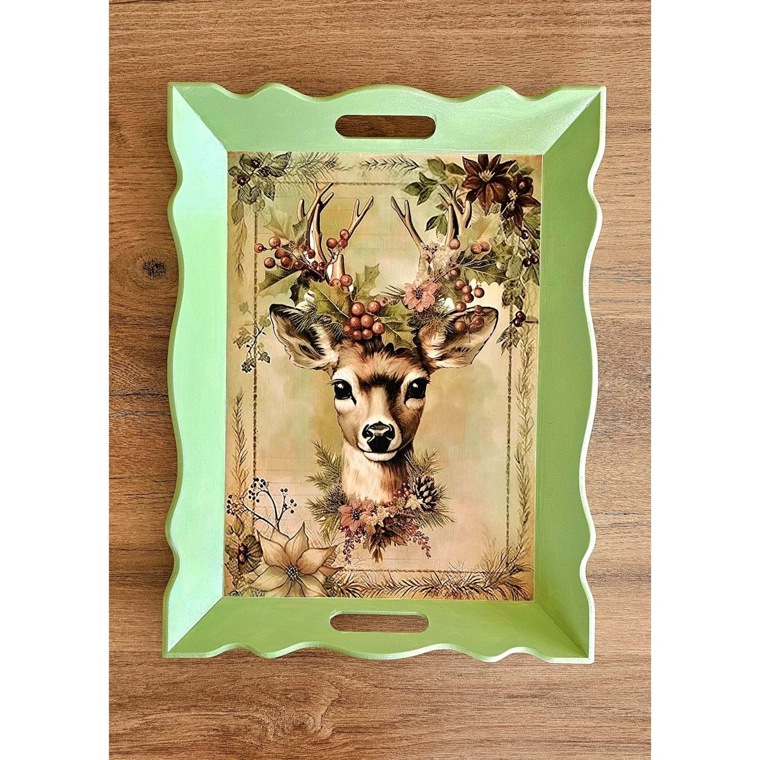• Doğal ahşap üzerine el boyaması,