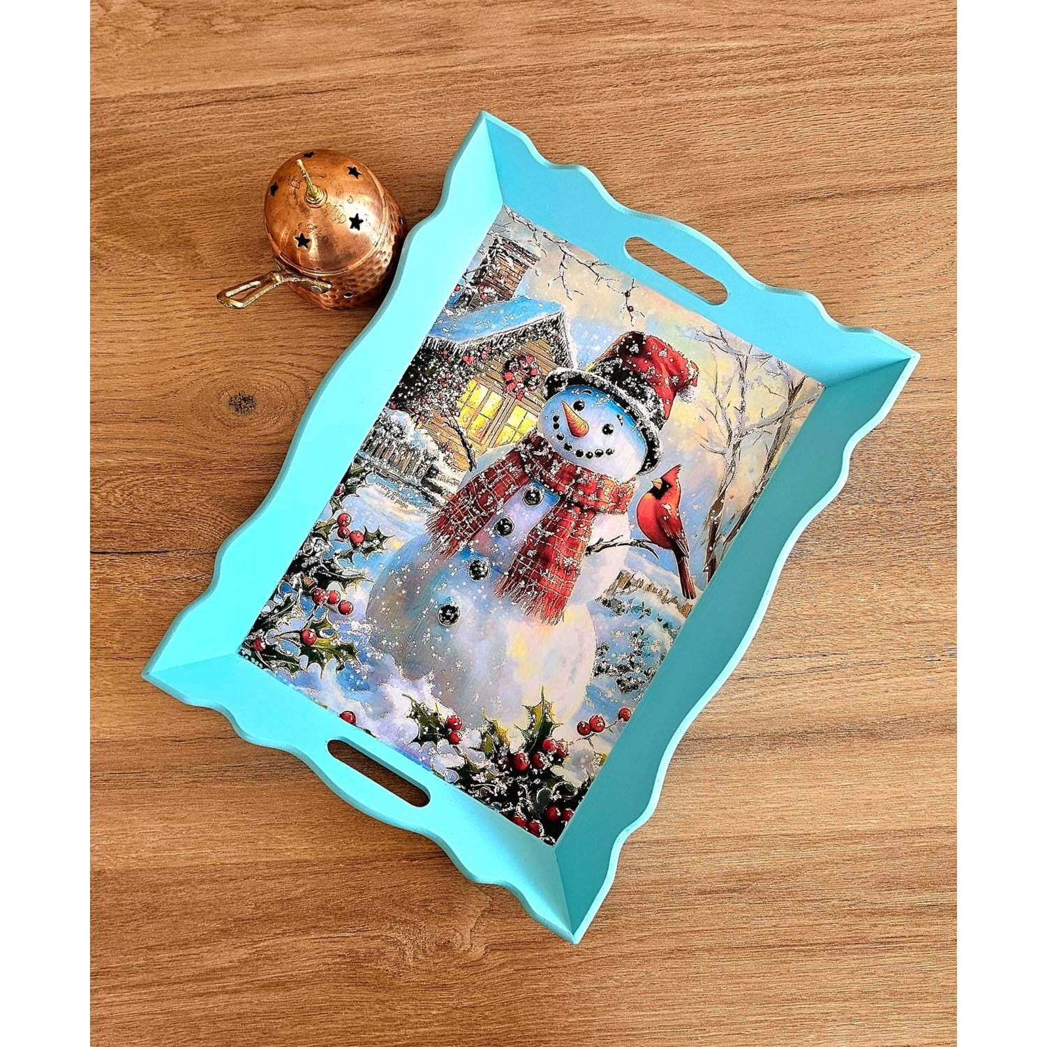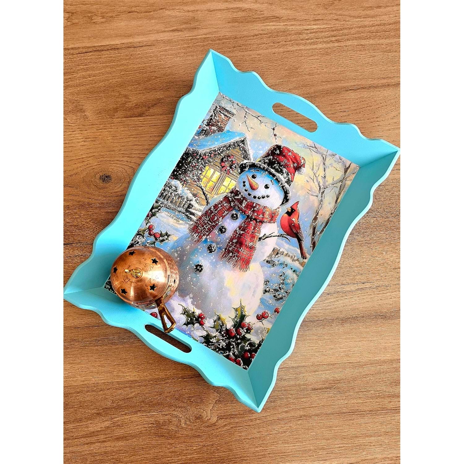 • Doğal ahşap üzerine el boyaması,
