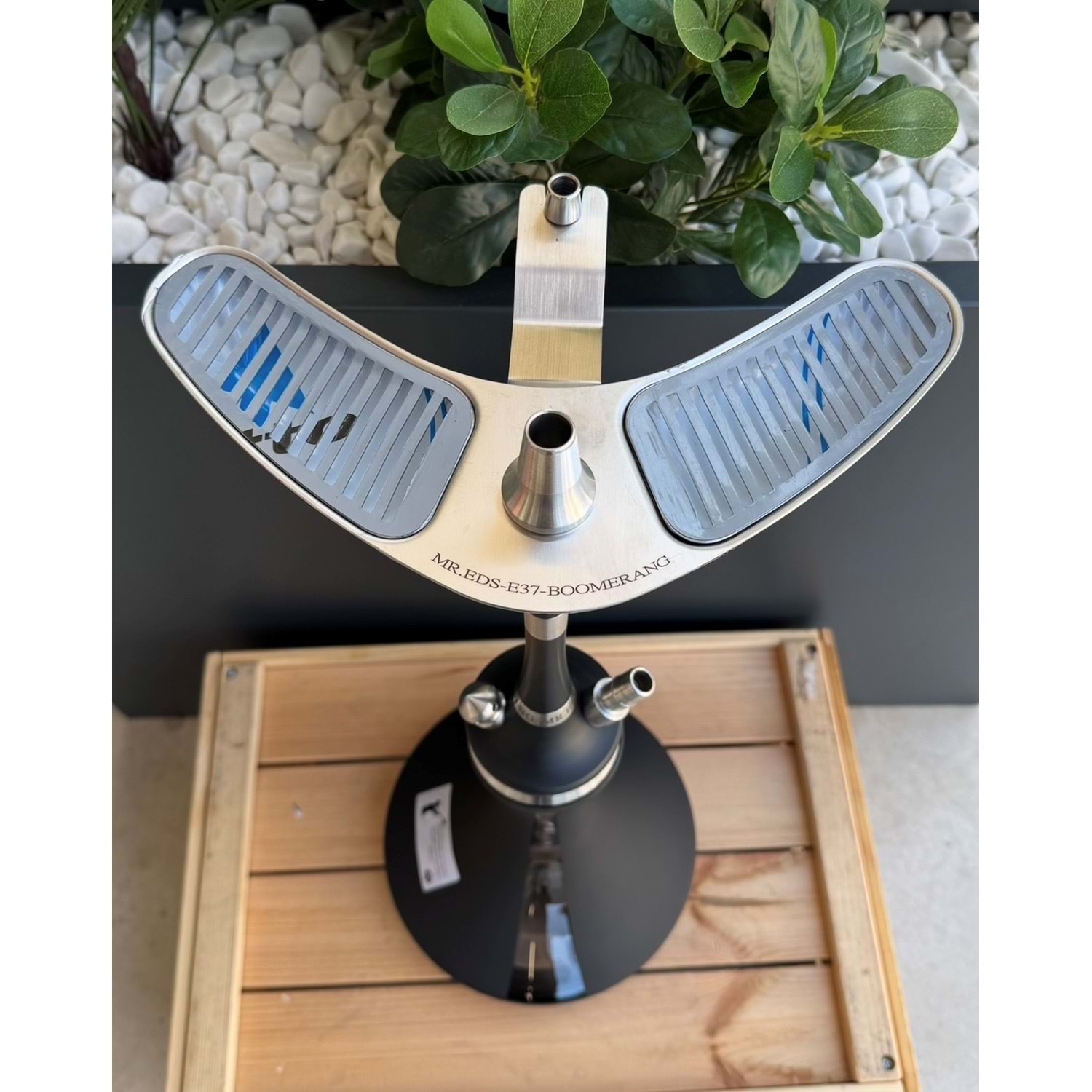 MR.EDS E37 BOOMERANG (ÇELİK SERİ BLACK), modern Boomerang tasarımını asil mat siyah rengiyle birleştiren şık bir nargile takımıdır. Dayanıklı çelik seri gövdesi, üstün performans ve uzun ömürlülük sunar. Özel ızgaralı tepsi ve optimize edilmiş yapısıyla, görseli ve içim kalitesini zirveye taşır.