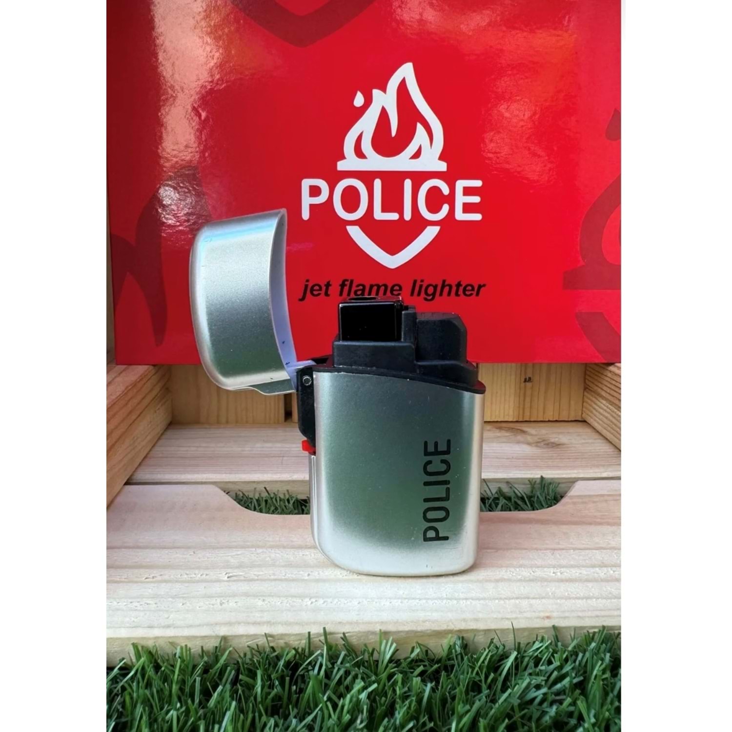 Police Turbo Kapaklı Çakmak/gri